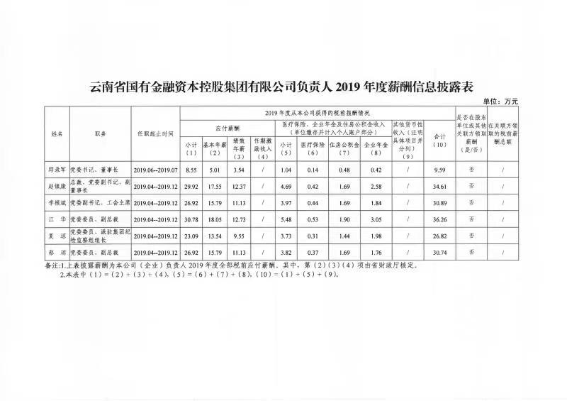 云南省國有金融資本控股集團(tuán)有限公司負(fù)責(zé)人2019年度薪酬信息披露表