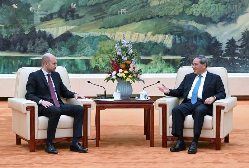 3月27日,國務(wù)院總理李強(qiáng)在北京人民大會堂會見法國外長巴羅。新華社記者 饒愛民 攝