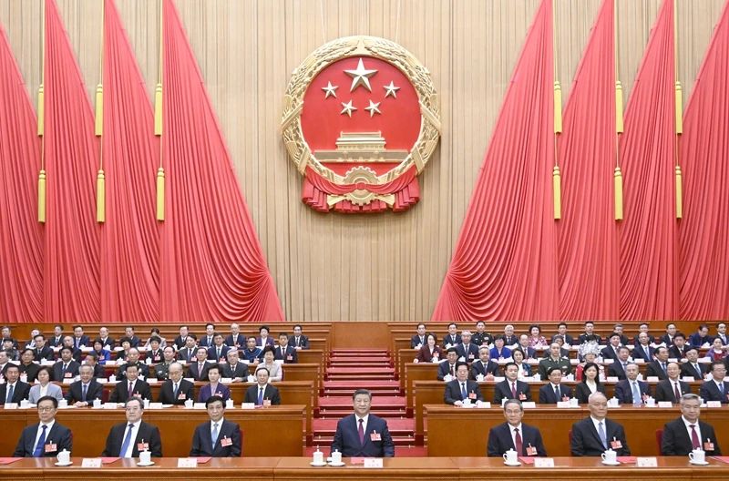 3月11日下午,第十四屆全國人民代表大會第三次會議在北京人民大會堂閉幕。黨和國家領(lǐng)導(dǎo)人習(xí)近平、李強、王滬寧、蔡奇、丁薛祥、李希、韓正等在主席臺就座。新華社記者 李學(xué)仁 攝
