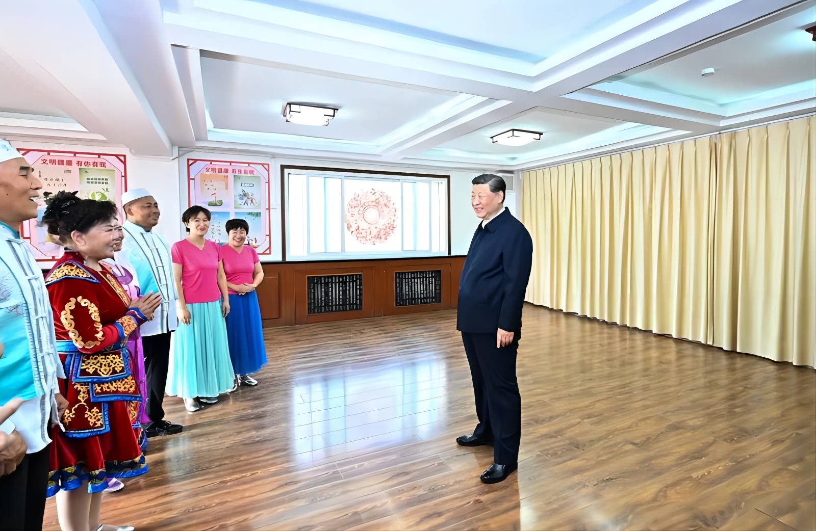 傍晚時(shí)分,社區(qū)廣場(chǎng)十分熱鬧,居民們看見(jiàn)總書(shū)記來(lái)了,紛紛圍攏過(guò)來(lái),熱烈鼓掌歡迎。習(xí)近平親切地對(duì)大家說(shuō),時(shí)隔4年,我再次來(lái)寧夏看望各族干部群眾,見(jiàn)到大家非常高興!中華民族是一個(gè)大家庭,各族人民要像石榴籽一樣緊緊抱在一起。要不斷鑄牢中華民族共同體意識(shí),把各族人民的心緊緊連在一起,把各方面的力量廣泛凝聚到一起,共同推進(jìn)中國(guó)式現(xiàn)代化,共襄中華民族偉大復(fù)興的盛舉。