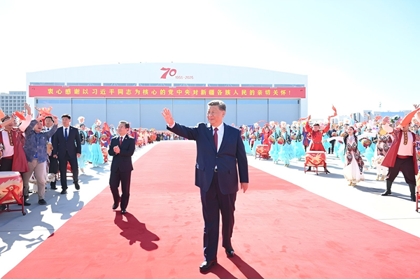 中共中央總書記、國家主席、中央軍委主席習近平在烏魯木齊出席新疆維吾爾自治區(qū)成立70周年慶祝活動后,25日乘專機返回北京。受習近平總書記囑托,以王滬寧為團長的中央代表團將于25日至28日在新疆各地看望慰問各族各界干部群眾。