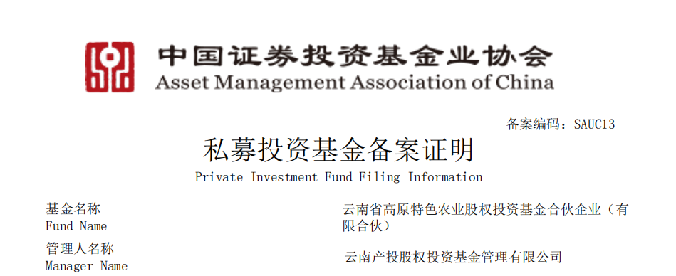2024年12月21日,省人民政府印發(fā)了《云南省政府投資基金支持產(chǎn)業(yè)高質(zhì)量發(fā)展實(shí)施方案》,在省財(cái)政廳帶領(lǐng)下,云南金控集團(tuán)全力推動(dòng)“省級(jí)引導(dǎo)基金+重點(diǎn)產(chǎn)業(yè)母基金+子基金”三級(jí)架構(gòu)建設(shè)。近日,云南省高原特色農(nóng)業(yè)高質(zhì)量發(fā)展基金作為云南省政府投資基金體系下的首只“重點(diǎn)產(chǎn)業(yè)母基金”完成工商注冊(cè),并于2025年2月12日在中國(guó)基金業(yè)協(xié)會(huì)備案。