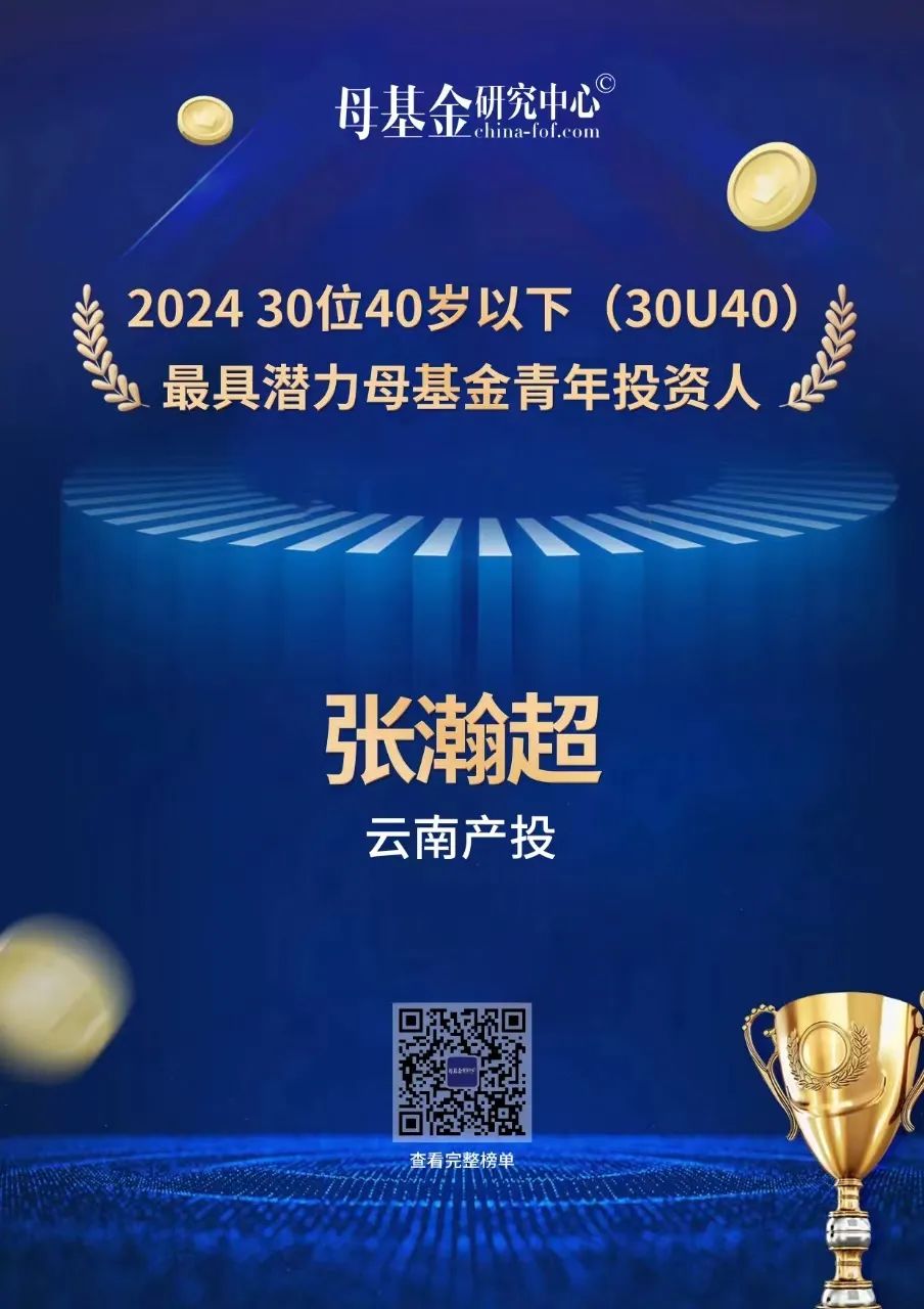 “五四”青年節(jié)之際,中國母基金研究中心評選出“2024優(yōu)秀青年投資人榜單”,集團旗下云南產(chǎn)投公司投資經(jīng)理張瀚超榮登“最具潛力母基金青年投資人Top30榜單”。