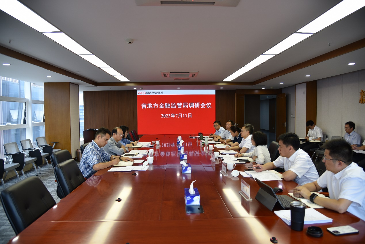 7月11日下午,云南省地方金融監(jiān)管局左廣局長(zhǎng)一行到集團(tuán)所屬省融資擔(dān)保公司調(diào)研,與集團(tuán)葉智勇總裁、蔡瓊副總裁和融擔(dān)公司班子交流座談。