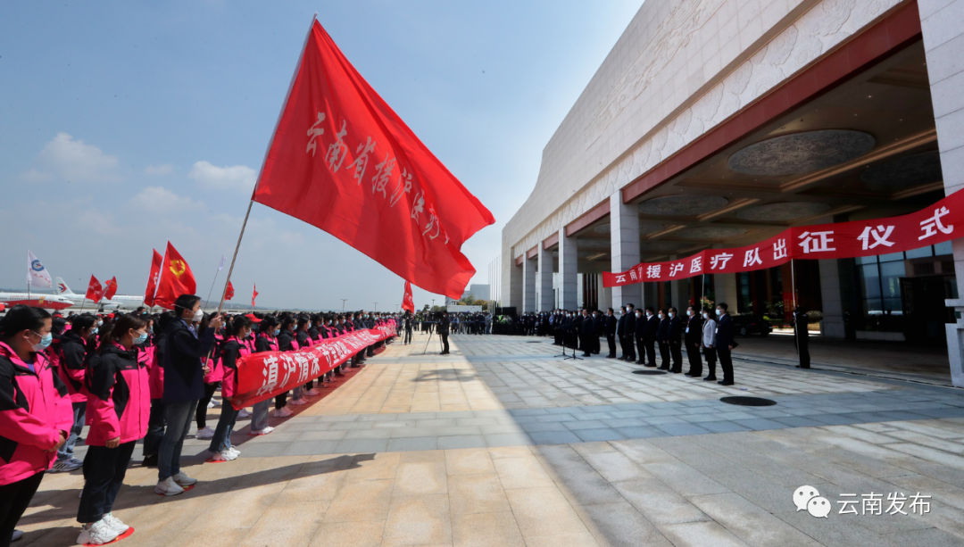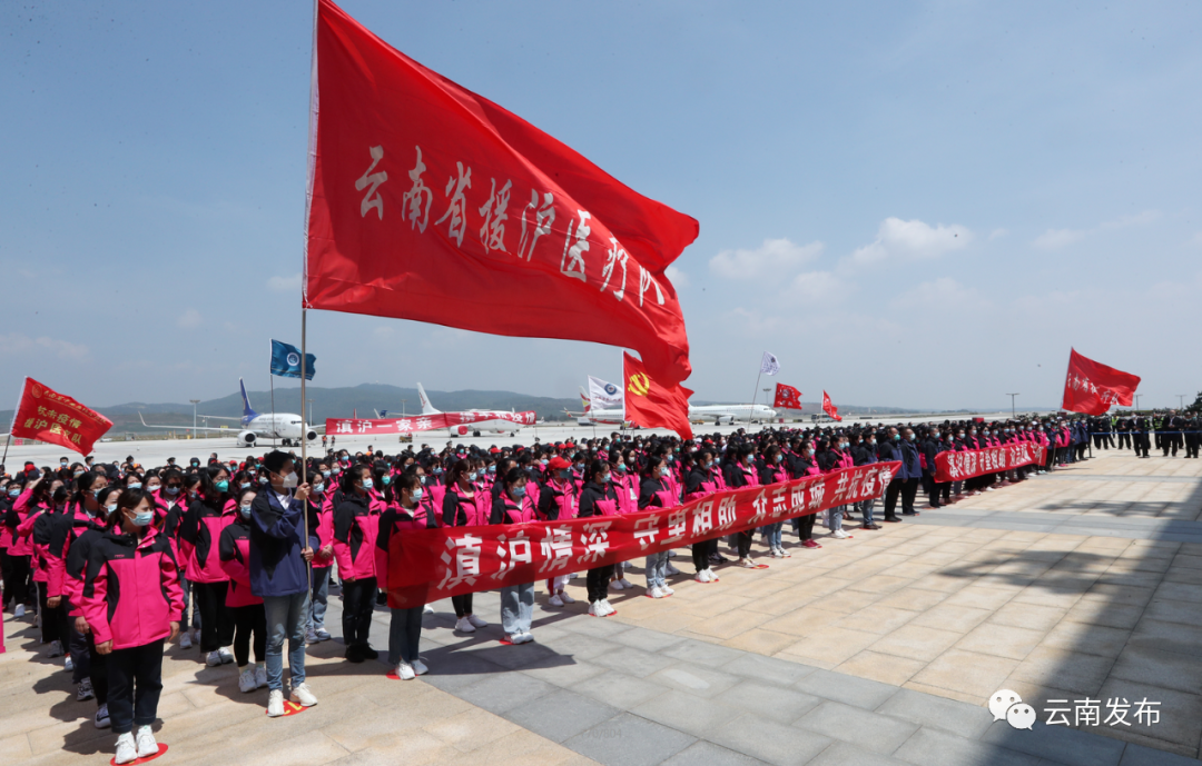 4月11日上午,省委、省政府在昆明長(zhǎng)水機(jī)場(chǎng)舉行儀式,為云南省援滬醫(yī)療隊(duì)第二批776名隊(duì)員送行。