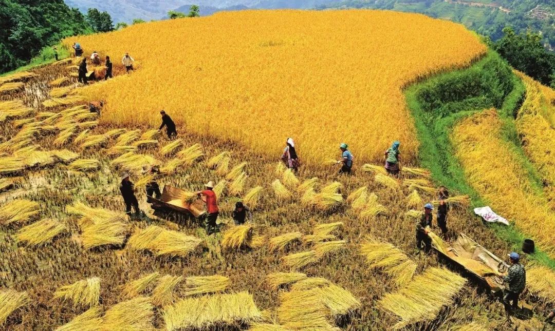 △ 云南省紅河哈尼族彝族自治州元陽(yáng)縣梯田紅米喜獲豐收。