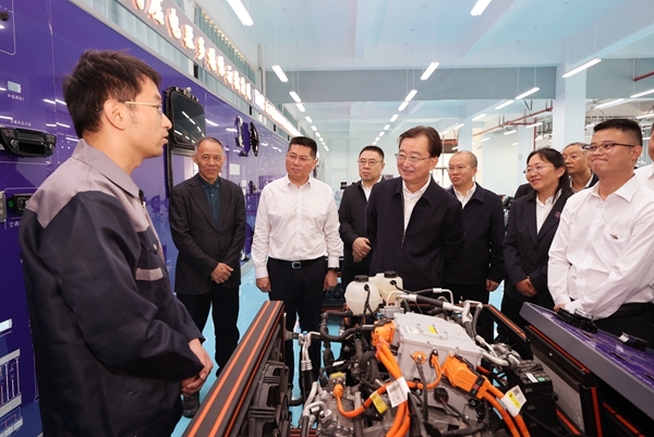9月24日,王寧在昭通職業(yè)學(xué)院調(diào)研職業(yè)教育發(fā)展時,與智能制造學(xué)院新能源汽車教學(xué)實訓(xùn)室?guī)熒涣鳌?/span>
