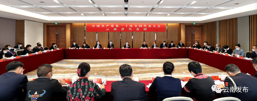 10月17日,云南省代表團舉行會議,繼續(xù)深入學習、認真討論黨的二十大報告。
