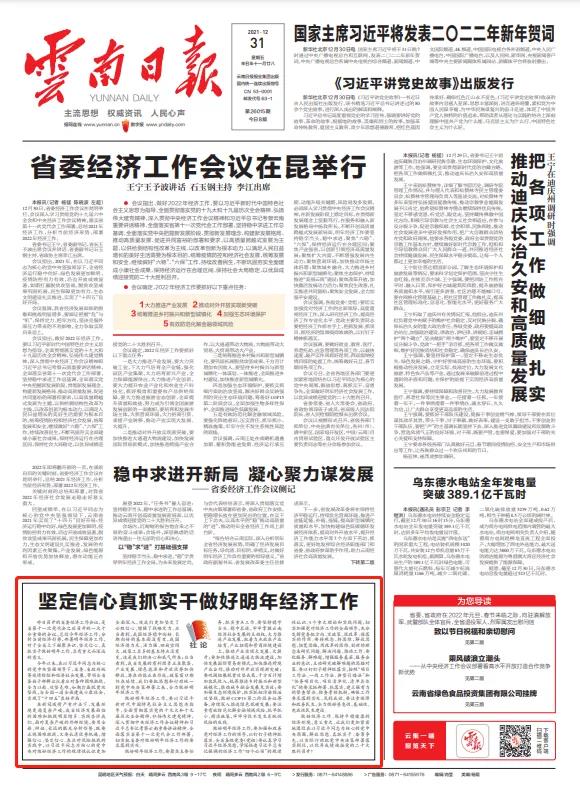 做好2022年經(jīng)濟(jì)工作,要以習(xí)近平新時(shí)代中國(guó)特色社會(huì)主義思想為指導(dǎo),全面貫徹落實(shí)黨的十九大和十九屆歷次全會(huì)精神,弘揚(yáng)偉大建黨精神,深入貫徹中央經(jīng)濟(jì)工作會(huì)議精神和習(xí)近平總書記考察云南重要講話精神,全面落實(shí)省第十一次黨代會(huì)工作部署,切實(shí)把省委對(duì)做好明年經(jīng)濟(jì)工作的要求落到實(shí)處。