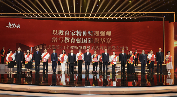 省委書記王寧,省委副書記、省長(zhǎng)王予波,省委副書記石玉鋼,省政協(xié)主席劉曉凱等與優(yōu)秀教師代表一起慶祝教師節(jié)。