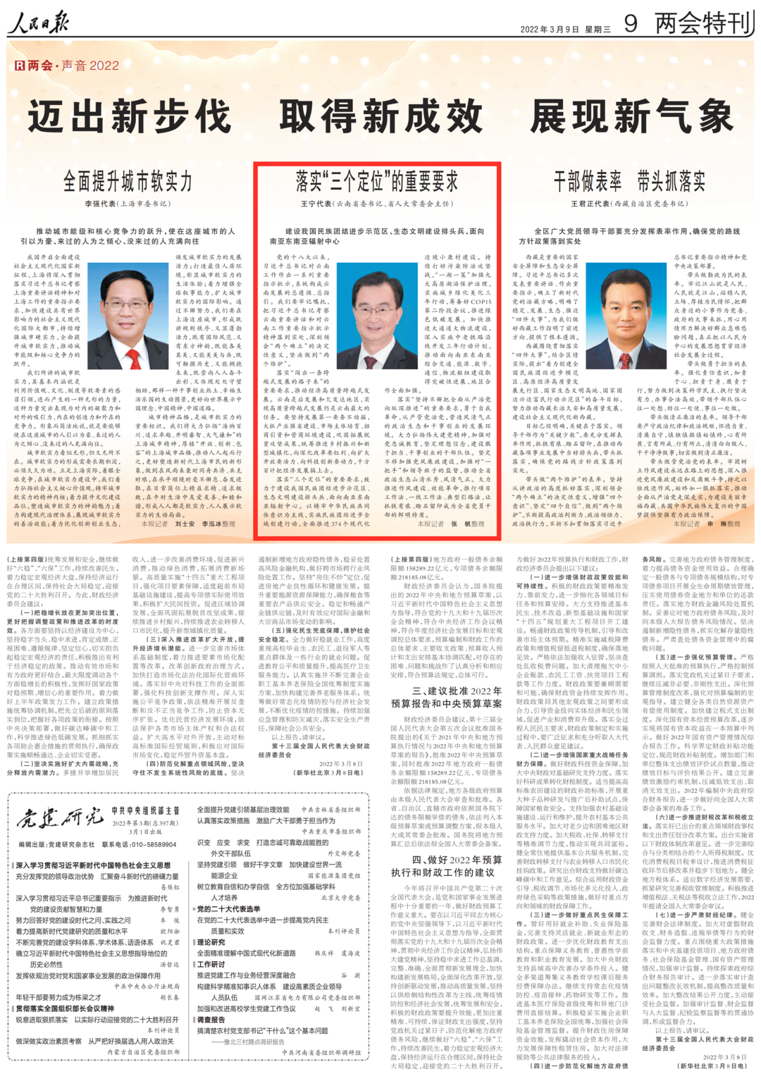 3月9日,《人民日報》兩會特刊刊發(fā)王寧代表“兩會·聲音”:落實“三個定位”的重要要求。