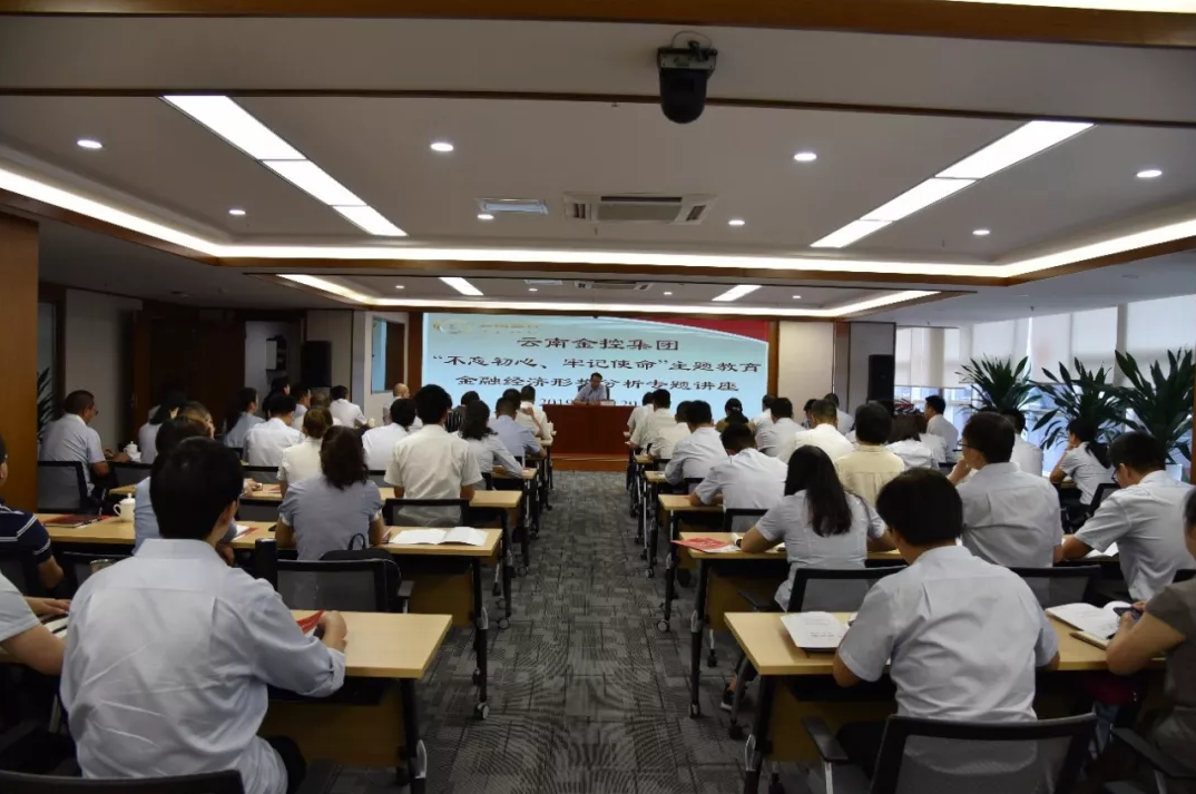 ? ?根據(jù)云南金控集團(tuán)“不忘初心、牢記使命”主題教育集中學(xué)習(xí)計(jì)劃安排,2019年6月29日,集團(tuán)黨委開展了形勢(shì)政策教育及研討活動(dòng),云南大學(xué)公共管理學(xué)院馬桑教授應(yīng)邀授課。集團(tuán)黨委書記、董事長邱錄軍同志,總裁、黨委副書記、副董事長趙鎮(zhèn)康同志,黨委副書記、工會(huì)主席李根斌同志,黨委委員、省紀(jì)委省監(jiān)委駐云南金控集團(tuán)紀(jì)檢監(jiān)察組組長夏瓊同志與集團(tuán)總部及下屬公司員工100余人參加此次教育活動(dòng),活動(dòng)由李根斌同志主持。