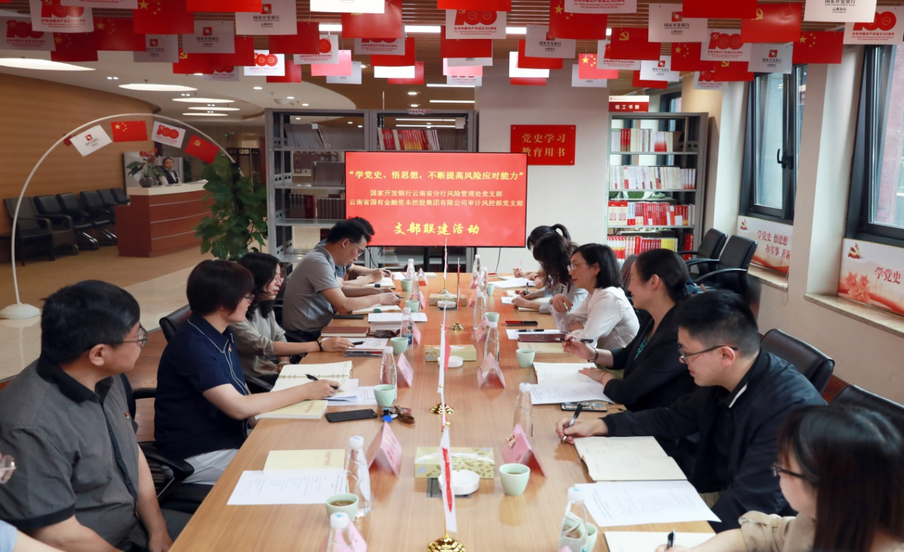 為加強與金融同業(yè)合作交流,深度推動黨建與業(yè)務(wù)融合,提高風(fēng)險防控能力,5月12日,集團審計風(fēng)控部黨支部與國開行云南分行風(fēng)險管理處黨支部開展以“學(xué)黨史、悟思想,不斷提高風(fēng)險應(yīng)對能力”為主題的聯(lián)建主題黨日活動。集團黨委委員、副總裁蔡瓊,國開行云南分行黨委委員、副行長姜山出席,集團審計風(fēng)控部全體員工、國開行風(fēng)險管理處全體員工參加活動。