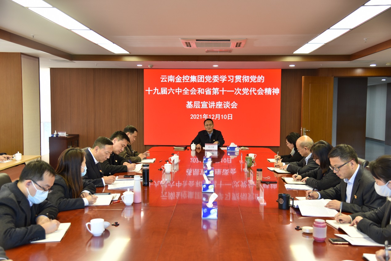 12月10日,云南金控集團(tuán)黨委書記、董事長遲中華到省融資擔(dān)保公司宣講黨的十九屆六中全會(huì)和省第十一次黨代會(huì)精神,并開展實(shí)地調(diào)研。集團(tuán)黨委副書記、工會(huì)主席李根斌,黨委委員、副總裁蔡瓊參加宣講和調(diào)研活動(dòng)。