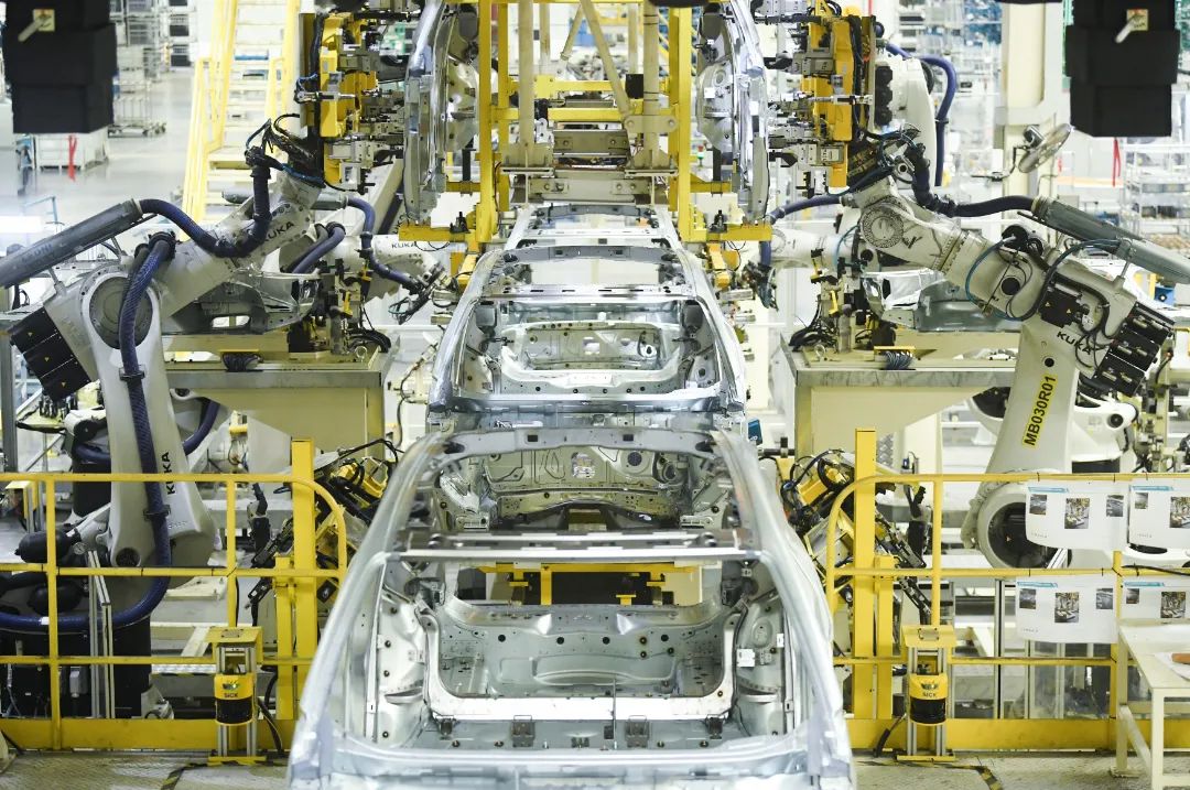 實體經(jīng)濟(jì)是金融的根基,金融是實體經(jīng)濟(jì)的血脈。近年來,浙江余姚市通過加大科技金融支持、推進(jìn)創(chuàng)新平臺建設(shè)等政策,不斷壯大優(yōu)勢產(chǎn)業(yè)集群,推進(jìn)制造業(yè)向高端化、智能化、綠色化發(fā)展。圖為2023年4月11日,在一家汽車企業(yè)的余姚工廠焊裝車間,智能機(jī)器人正在作業(yè)。新華社記者 翁忻旸/攝