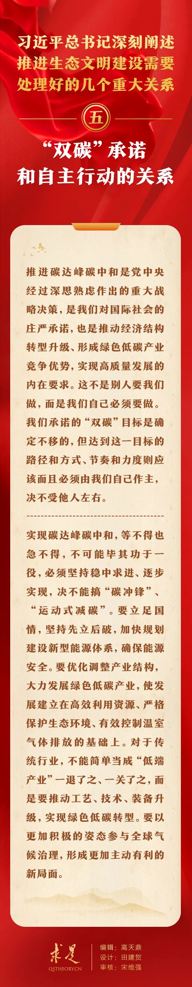 11月16日出版的第22期《求是》雜志刊發(fā)習(xí)近平總書記重要文章《推進(jìn)生態(tài)文明建設(shè)需要處理好幾個重大關(guān)系》。在這篇重要文章中,總書記從“高質(zhì)量發(fā)展和高水平保護(hù)的關(guān)系”、“重點(diǎn)攻堅(jiān)和協(xié)同治理的關(guān)系”、“自然恢復(fù)和人工修復(fù)的關(guān)系”、“外部約束和內(nèi)生動力的關(guān)系”、“‘雙碳’承諾和自主行動的關(guān)系” 5個方面,深刻闡明推進(jìn)生態(tài)文明建設(shè)需要處理好的幾個重大關(guān)系,提出明確要求。