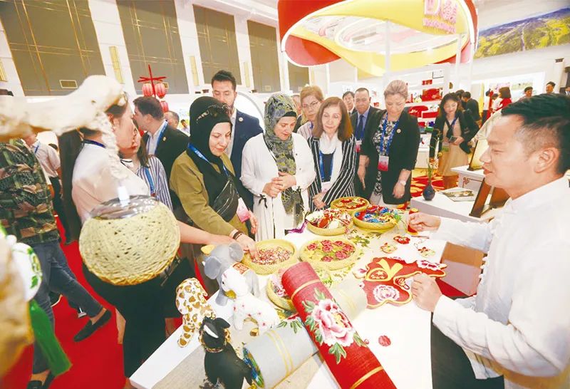 2019年6月27日,“中國(guó)共產(chǎn)黨的故事——習(xí)近平新時(shí)代中國(guó)特色社會(huì)主義思想在河南的實(shí)踐”專題宣介會(huì)在河南蘭考舉行。圖為與會(huì)外方代表近距離感受當(dāng)?shù)孛袼孜幕镊攘Α?中聯(lián)部供圖