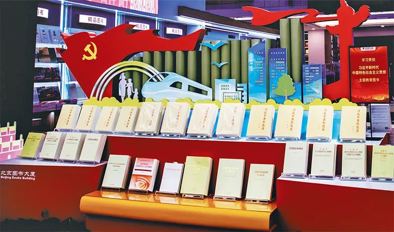 隨著強(qiáng)國(guó)建設(shè)、民族復(fù)興偉業(yè)的推進(jìn),習(xí)近平新時(shí)代中國(guó)特色社會(huì)主義思想不斷豐富拓展并不斷體系化學(xué)理化,構(gòu)成一個(gè)邏輯嚴(yán)密、內(nèi)涵豐富、系統(tǒng)全面、博大精深的科學(xué)體系,實(shí)現(xiàn)了馬克思主義中國(guó)化時(shí)代化新的飛躍。圖為2023年10月12日在北京圖書(shū)大廈拍攝的學(xué)習(xí)貫徹習(xí)近平新時(shí)代中國(guó)特色社會(huì)主義思想主題教育圖書(shū)專區(qū)。 劉新武/攝