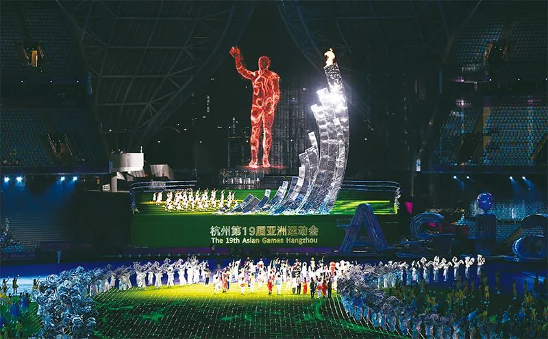 黨的十八大以來(lái),在習(xí)近平新時(shí)代中國(guó)特色社會(huì)主義思想指引下,我國(guó)各項(xiàng)事業(yè)取得歷史性成就、發(fā)生歷史性變革。在剛剛閉幕的杭州第19屆亞洲運(yùn)動(dòng)會(huì)上,從首創(chuàng)“亞運(yùn)數(shù)字火炬手”到推出電子身份注冊(cè)卡、探索使用5.5G新技術(shù)……數(shù)字賦能、科技助力,讓世界看到了中國(guó)的科技實(shí)力和東方文化的魅力。圖為2023年10月8日,在杭州亞運(yùn)會(huì)閉幕式上,數(shù)字火炬手“弄潮兒”向現(xiàn)場(chǎng)觀眾揮手致意。 新華社記者 王鵬/攝