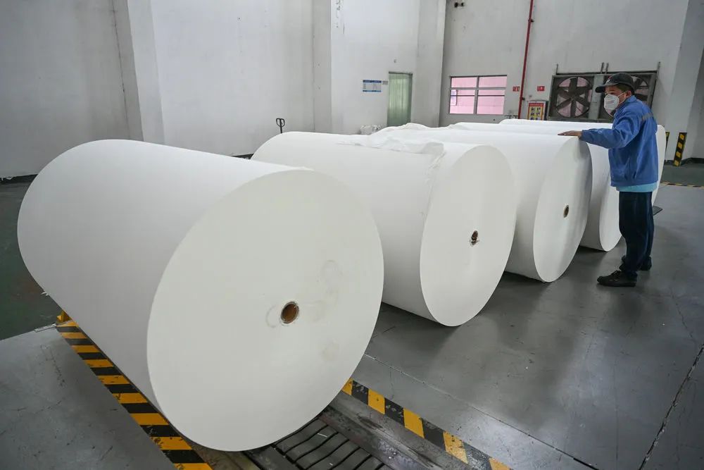 工人在福建泉州晉江市一家紙巾生產(chǎn)企業(yè)作業(yè)(2022年3月21日攝)。新華社記者 周義 攝