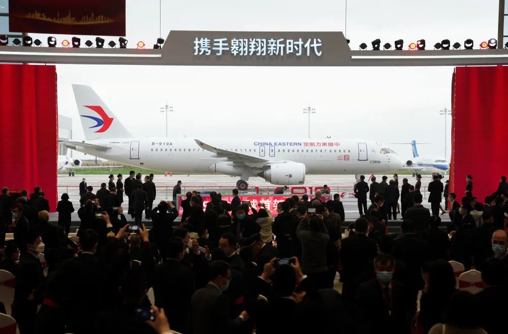 這是國產(chǎn)大飛機(jī)C919交付全球首家用戶東航的儀式現(xiàn)場(2022年12月9日攝)。新華社記者 丁汀 攝