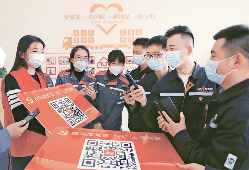 ?2022年11月15日,在山東省東營市的東營區(qū)化工產業(yè)園區(qū)“紅運家”紅領驛站,非公企業(yè)黨員掃描“指尖微黨課”二維碼學習黨章等知識,推動黨的二十大精神和《中國共產黨章程》深入人心、落地生根。人民圖片 劉智峰/攝