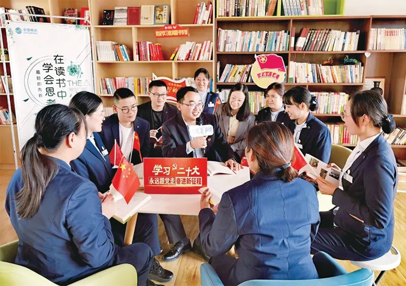 圖為2022年10月28日,江蘇移動(dòng)“青年愛(ài)研習(xí)”宣講“青騎兵隊(duì)”向一線員工宣講黨的二十大精神。 江蘇移動(dòng)團(tuán)委供圖