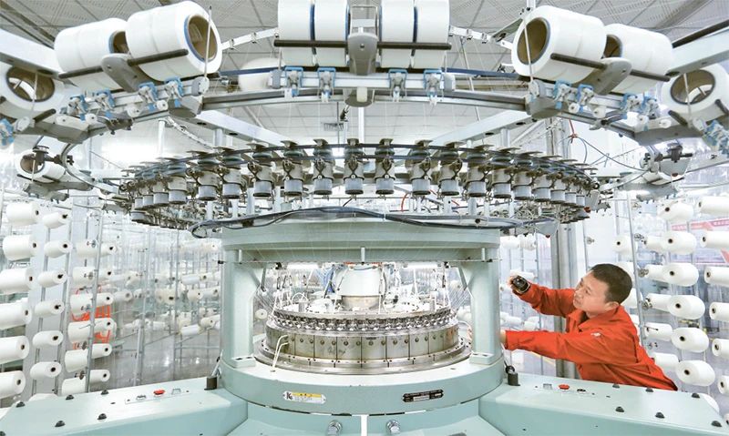 近年來,我國持續(xù)引導(dǎo)紡織企業(yè)加大新技術(shù)、新裝備、新工藝的研發(fā)和投入,加快信息化和工業(yè)化融合升級(jí)改造。圖為2025年5月19日,山東省青島市即墨區(qū)一家紡織企業(yè)的工人在生產(chǎn)出口海外市場(chǎng)的服裝面料。 新華社發(fā) 梁孝鵬/攝