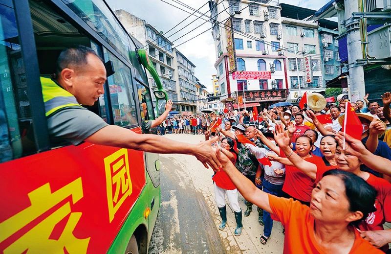 黨的十八大以來,中國共產(chǎn)黨人繼承和發(fā)揚黨的優(yōu)良傳統(tǒng)和作風(fēng),始終保持同人民群眾的血肉聯(lián)系。近期,貴州省榕江縣發(fā)生特大洪澇災(zāi)害,黨員干部沖鋒在前,構(gòu)筑起保護(hù)群眾、守護(hù)家園的堅固防線。圖為2025年7月3日,當(dāng)?shù)厝罕娮园l(fā)涌上街頭,送別救援隊伍,表達(dá)感激之情。 新華社發(fā) 楊武魁/攝