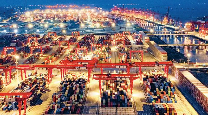 港口是高水平對(duì)外開放的窗口。圖為2022年11月5日,江蘇太倉港集裝箱碼頭燈火通明。2022年1月至10月,江蘇太倉港累計(jì)完成集裝箱吞吐量665萬標(biāo)箱,同比增長(zhǎng)16.1%。 人民圖片 袁新宇/攝