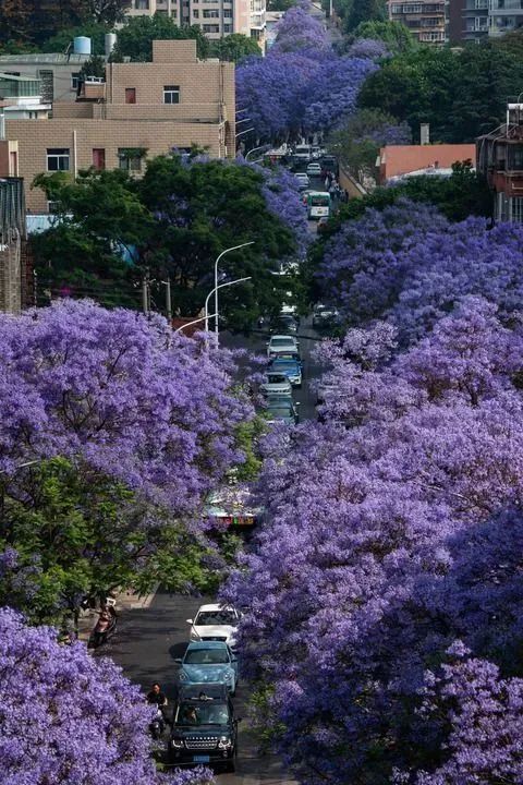 昆明教場中路的藍(lán)花楹 新華社記者 陳欣波 攝