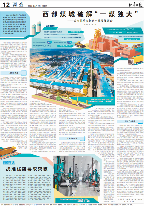 2022年實現(xiàn)地區(qū)生產(chǎn)總值增速和增量均居云南第一,對云南經(jīng)濟增長的貢獻度連續(xù)4年達20%以上……曲靖,這座曾高度依賴煤炭資源的西南小城,深挖比較優(yōu)勢,找準新賽道,如今實現(xiàn)經(jīng)濟發(fā)展逆勢而上。這條逆襲之路是如何完成的?面對工業(yè)轉(zhuǎn)型升級和高質(zhì)量發(fā)展的目標,曲靖又有怎樣的思考?