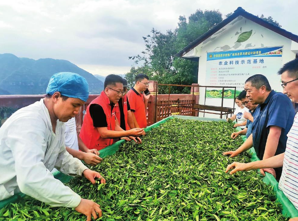 大關(guān)縣茶產(chǎn)業(yè)專家到一線開展技術(shù)指導(dǎo)。沈迅 汪玉美 攝