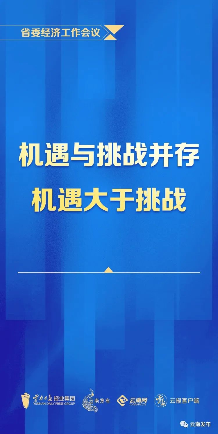 ?綜合分析研判各項(xiàng)因素,省委經(jīng)濟(jì)會(huì)議發(fā)出了一個(gè)響亮的聲音:明年,云南經(jīng)濟(jì)發(fā)展面臨的機(jī)遇和挑戰(zhàn)并存,機(jī)遇大于挑戰(zhàn)。我們要堅(jiān)定做好經(jīng)濟(jì)工作的信心,凝聚各方力量、激發(fā)干事活力,將中央經(jīng)濟(jì)工作會(huì)議精神落實(shí)落細(xì)。