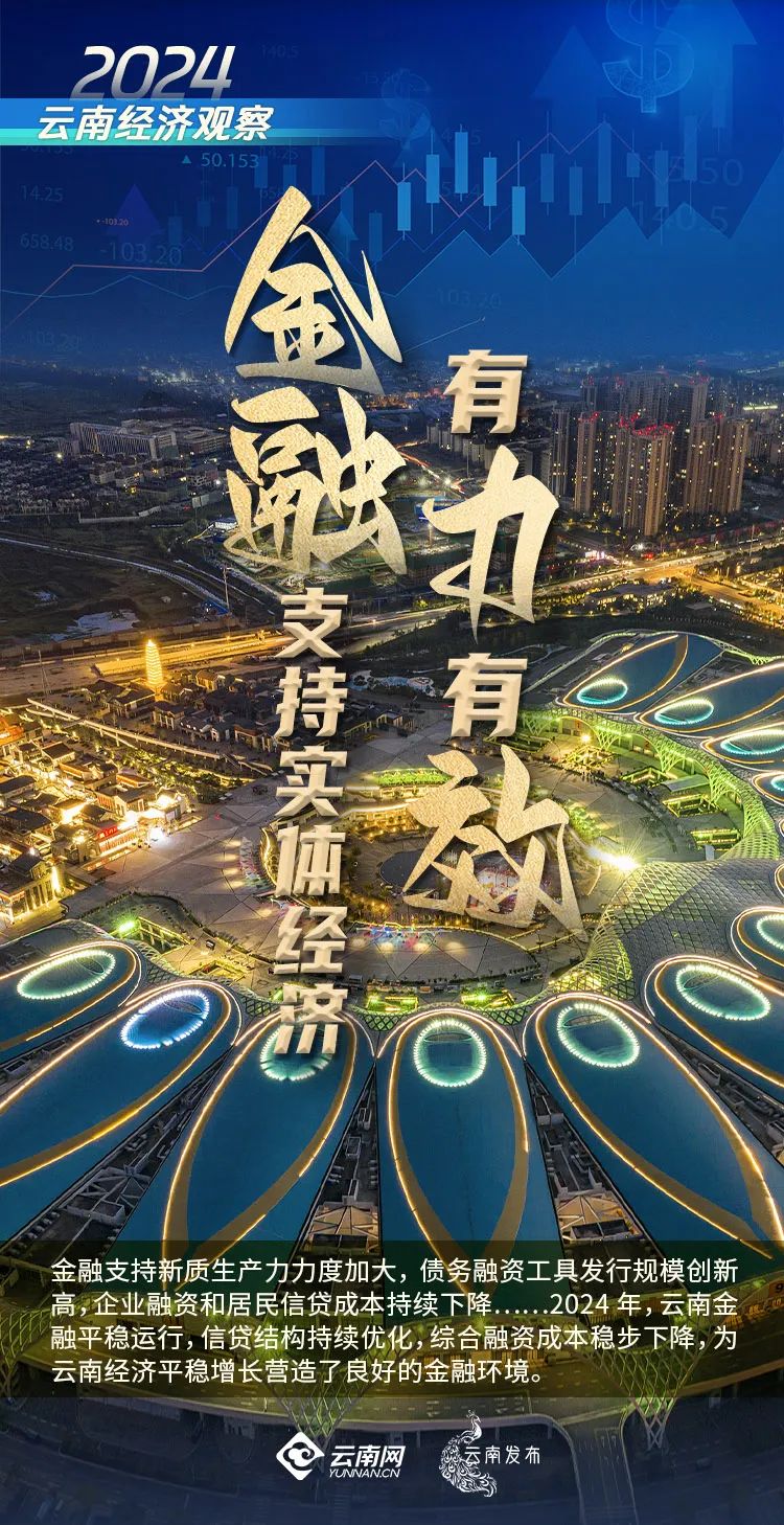 金融支持新質生產力力度加大,債務融資工具發(fā)行規(guī)模創(chuàng)新高,企業(yè)融資和居民信貸成本持續(xù)下降……2024年,云南金融平穩(wěn)運行,信貸結構持續(xù)優(yōu)化,綜合融資成本穩(wěn)步下降,為云南經濟平穩(wěn)增長營造了良好的金融環(huán)境。