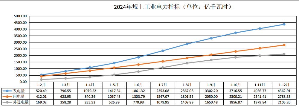 2024年,全省全部發(fā)電量4646.35億千瓦時,同比增長11.9%。全省規(guī)模以上發(fā)電企業(yè)發(fā)電量4362.91億千瓦時,同比增長10.6%。其中:水電3107.26億千瓦時,增長6.9%;火電599.66億千瓦時,下降6.5%;風電374.30億千瓦時,增長32.6%;太陽能發(fā)電281.70億千瓦時,增長151.0%。