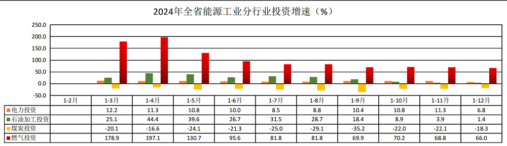 2024年,全省規(guī)模以上能源工業(yè)增加值增速同比增長3.5%。其中,電力、熱力生產(chǎn)和供應業(yè)增長6.3%,煤炭開采和洗選業(yè)下降11.8%,石油、煤炭及其他燃料加工業(yè)下降3.0%,燃氣生產(chǎn)和供應業(yè)增長17.6%,水的生產(chǎn)和供應業(yè)增長2.3%。